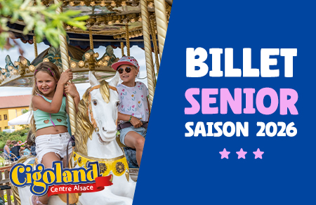 19.50 €E-Billet valable pour un sénior à partir de 60 ans donnant droit à un accès au Parc Cigoland selon calendrier d'ouverture. Une pièce d'identité pourra être exigée afin de vérifier l'âge du bénéficiaire.
